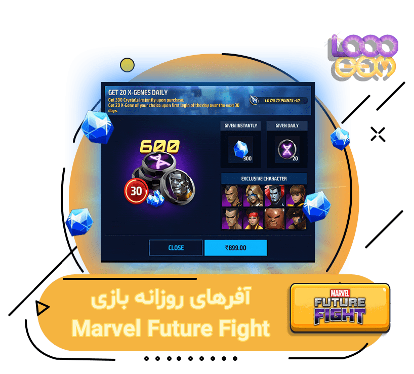 اگر به مرحلهای رسیدید که دیگر در خزانهی خود الماسی برای خرج کردن نداشتید میتوانید این کسری جم مارول فیوچر فایت را با خریداری آن از سایت معتبر ۱۰۰۰جم جبران کنید.