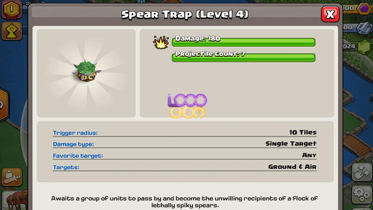 تله نیزه زمانی فعال میشود که نیروهای دشمن در نزدیکی 10 کاشی اطراف نیزه در حال حمله هستند.در این زمان تله نیزه فعال میشود و به صورت هوایی و زمینی به سمت نیروهای حمله کننده نیزه پرتاب میکند.